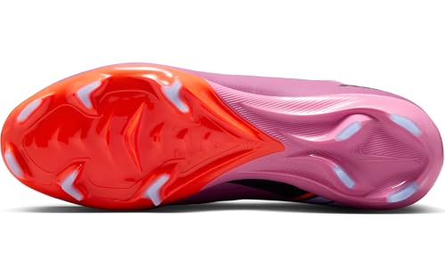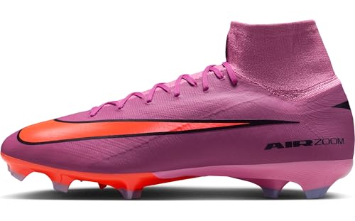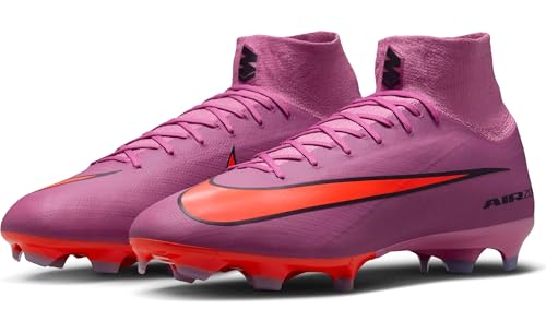 Speed is your superpower? Our pro football boots are suitable for anyone who determines the pace of play until the last minute. That’s why we have equipped the Superfly 10 with an improved Air Zoom element. It gives you the driving feel you need to break through the gate space. Take your skills to the next level with some of Nike greatest innovations – such as our Flyknit upper that makes the shoe even lighter so you can play faster. Grippy ball feel: The grippy finish allows precise shots and optimal ball control during fast dribbling. FAST TRACTION The wave-shaped traction pattern consists of a series of cascading studs that enlarge the surface area of the Air Zoom element while giving reliable grip. The largest stud is just as high as our proven medium cleats, so traction is not affected. We’ve combined the wavy traction pattern with redesigned chevron and blade cleats to facilitate quick change of direction. COMFORTABLE FIT This Mercurial is the first to feature full-length Flyknit upper. It has been optimised for the demands of the game and has the typical characteristics of a Mercurial. A shoe designed for speed. An incredibly lightweight yet strong Flyknit on the side panels provides grip and a more precise feel for the ball. An elastic Flynit collar ensures a secure fit. – Ideal for use on wet short grass pitches – Cushioned insole